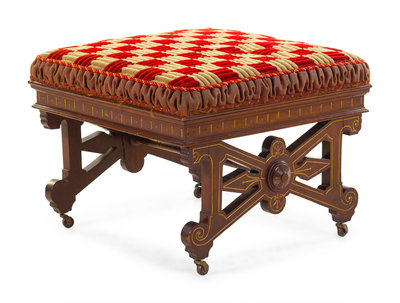 A Victorian Incised Mahogany Footstool