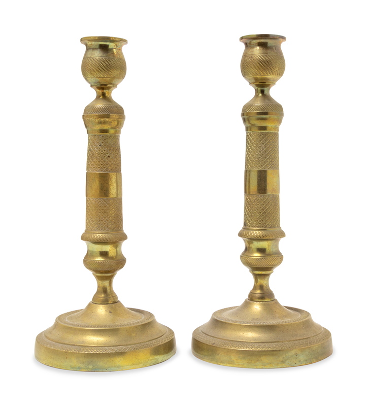 A Pair of Neoclassical Style Brass Candlesticks