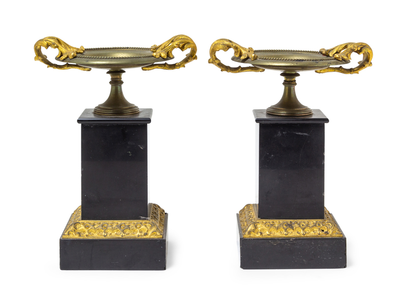 A Pair of Neoclassical Gilt Bronze and Slate Tazze