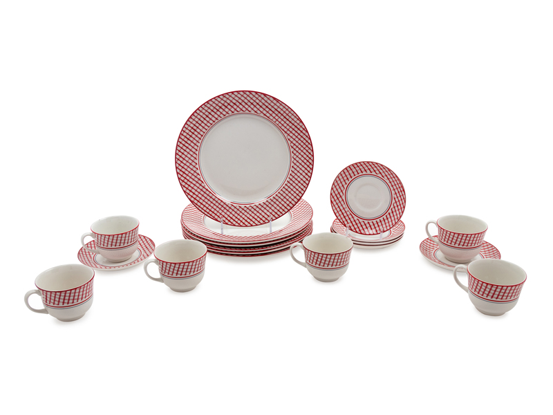 comprising 6 plates, 6 teacups and 6 saucers; 18 items total.