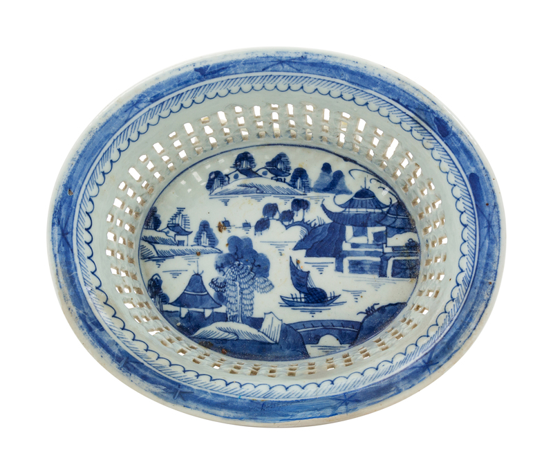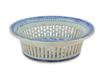 A Chinese Export Cobalt-Decorated Reticulated Porcelain Bowl