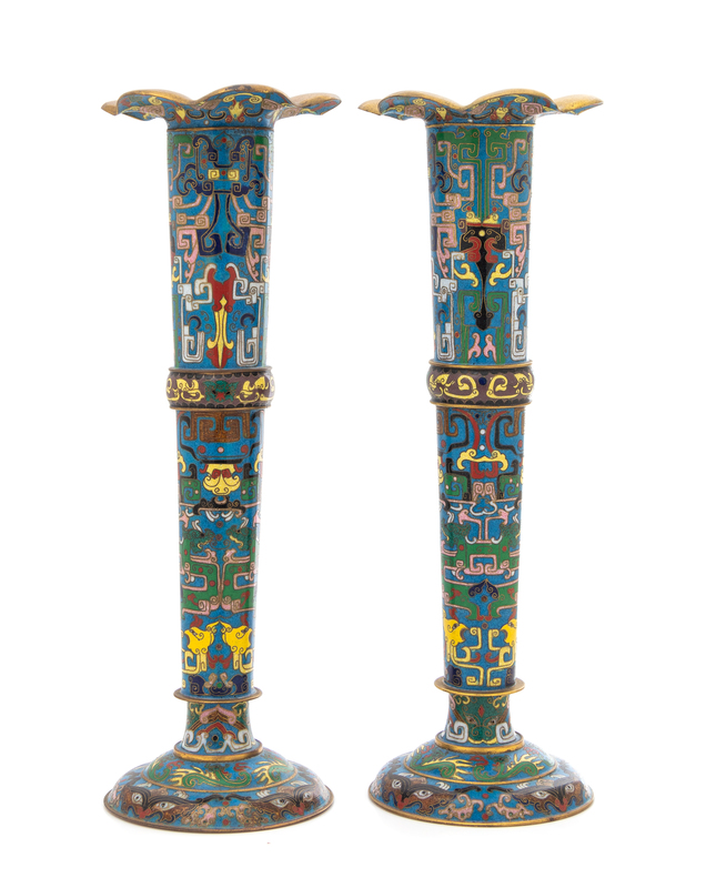 decorated throughout with stylized taotie masks against a bleu-celeste ground.