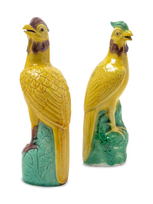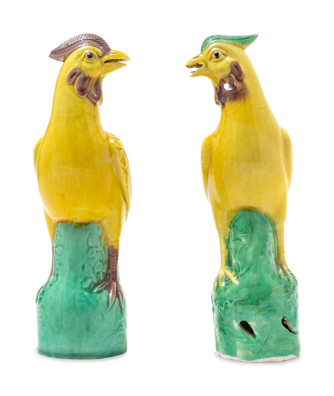 A Pair of Chinese Export Porcelain Figures of Roosters