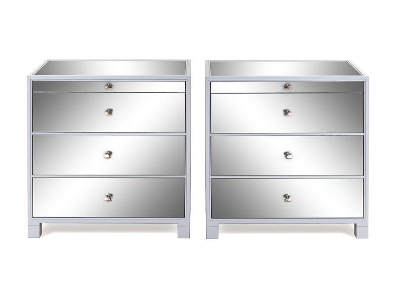 A Pair of Custom Silvered Glass Mounted Painted Bedside Tables