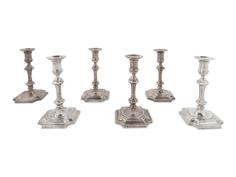A Set of Four English Silver Candlesticks