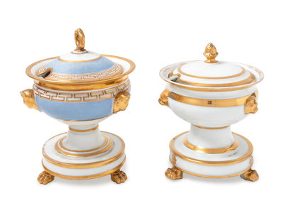 Two Similar Paris Porcelain Covered Sauces on Stands