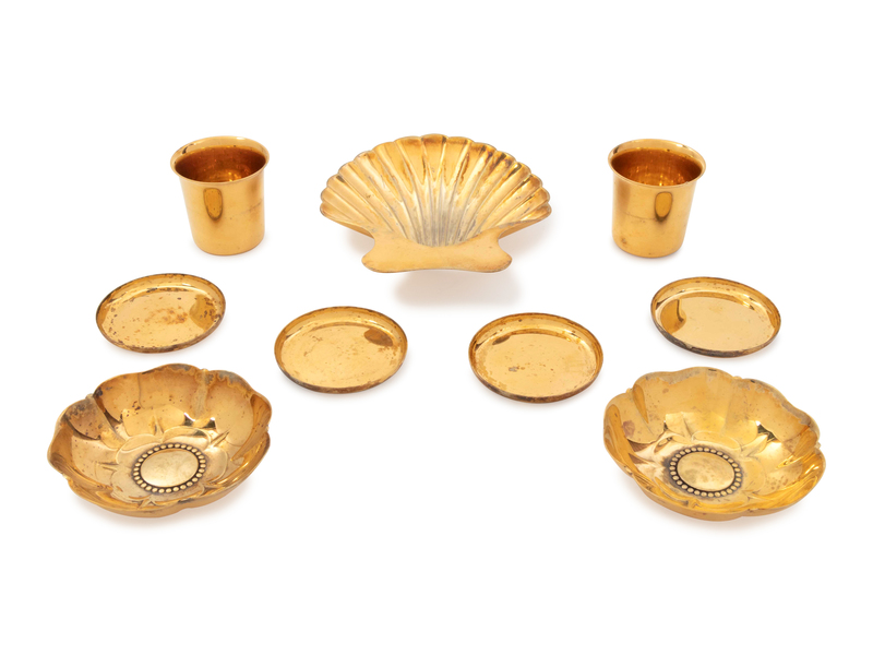 comprising a shell-form dish, a pair of nut dishes, four butter pads, and two small articles.