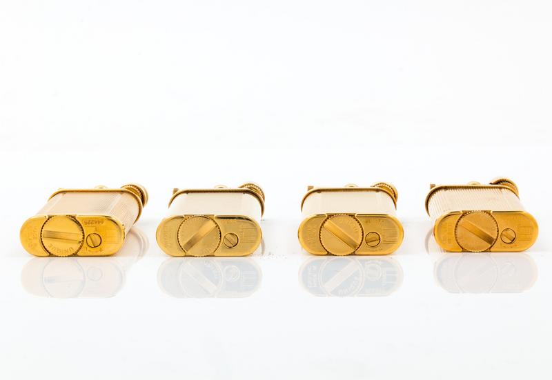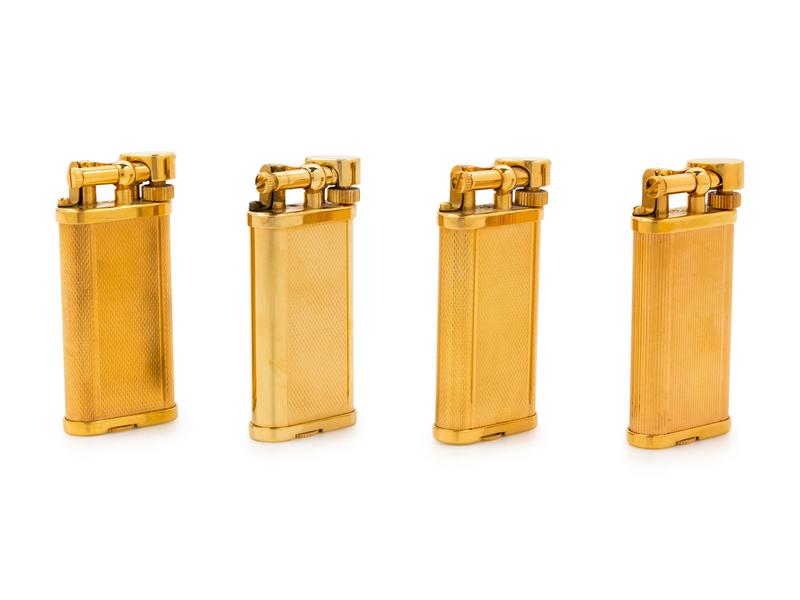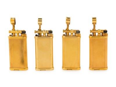 A Group of Four Gilt Metal Dunhill Lift-Arm Lighters