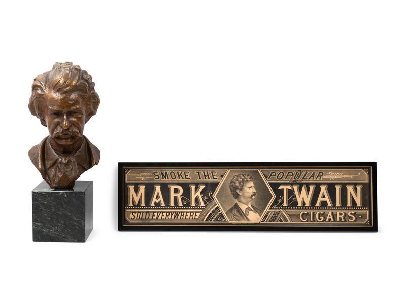 A Mark Twain Cigar Advertisement Poster and Bust