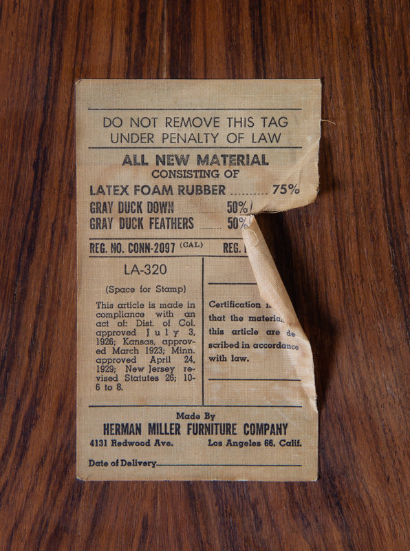 manufacturer's paper labels to underside of each