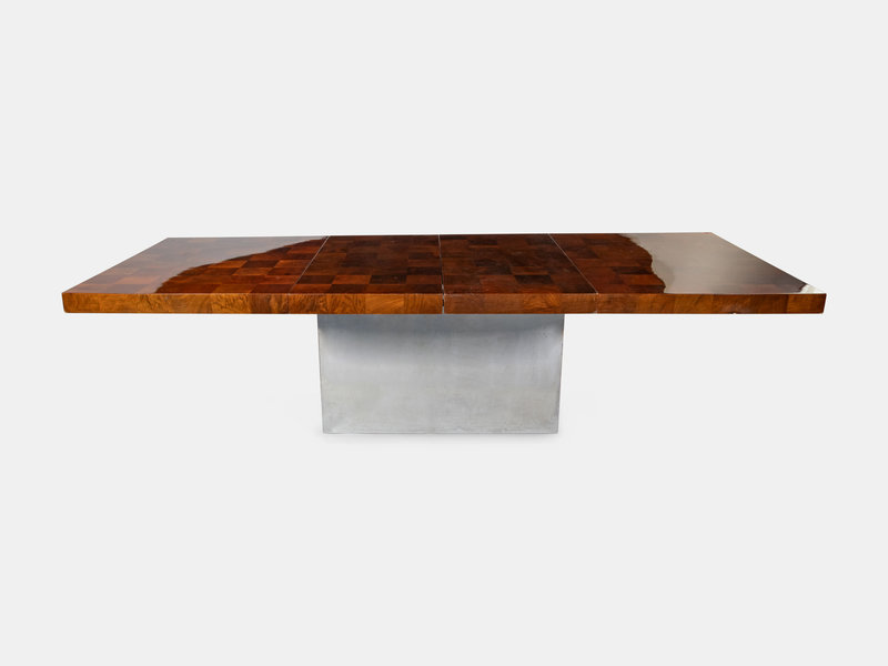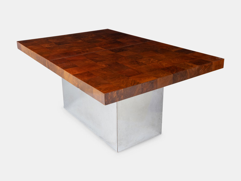 burl walnut, chrome plated steel