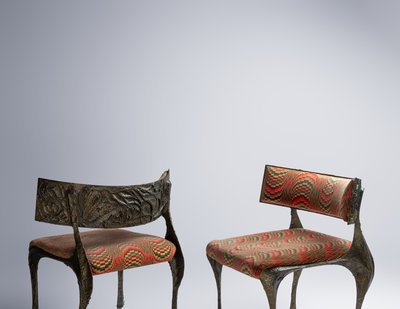 Pair of Sculptured Metal Lounge Chairs,