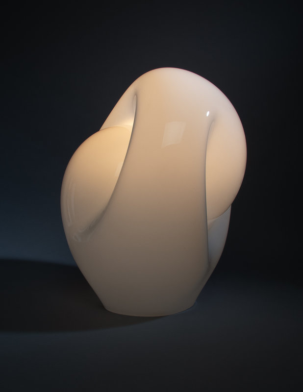 blown glass, chrome-plated steel