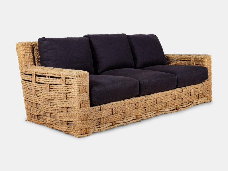 rope and upholstery over wood and steel frame