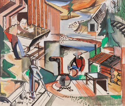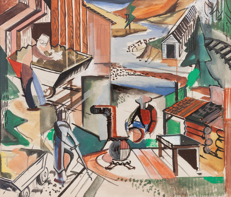 Gold Mining, Homestake Mine, South Dakota, 1948, watercolor and gouache on board