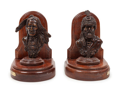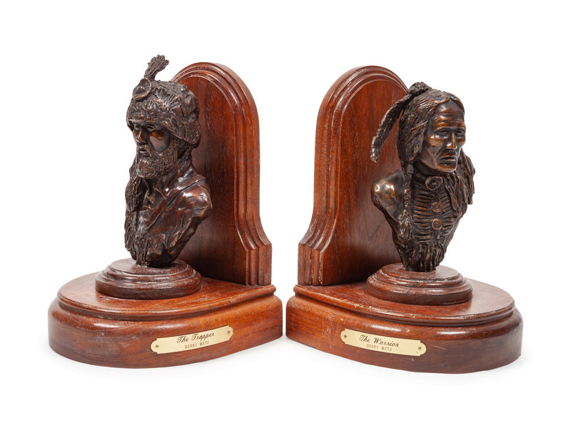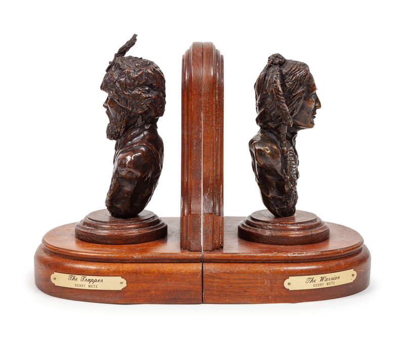 Pair of Bookends, Trapper and Warrior, edition 6/100, bronze, each signed Gerry Metz and numbered (verso)