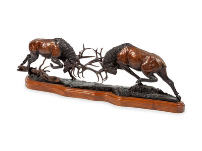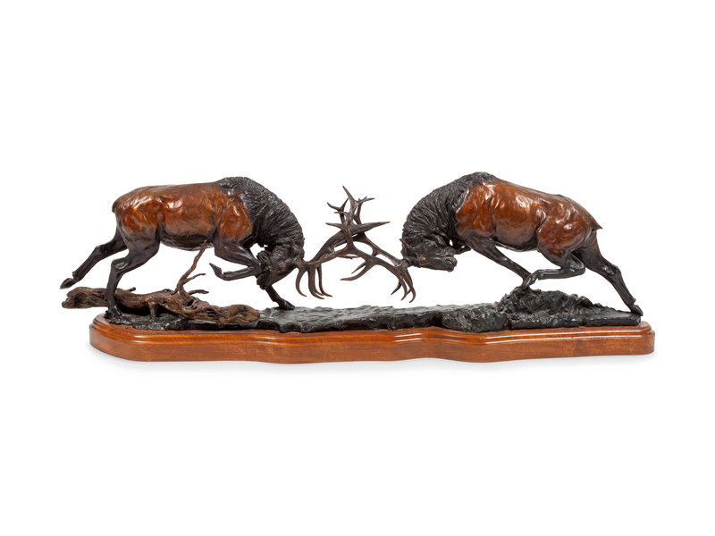 Two Elk, edition 10/50, 1987, bronze, signed Lorenzo E. Ghilieri, dated and numbered (base)