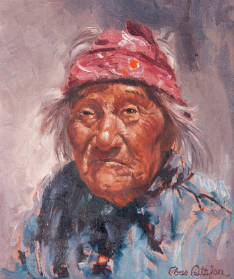 Weathered Trail Boss, oil on canvas, signed Ross Stefan (lower right)