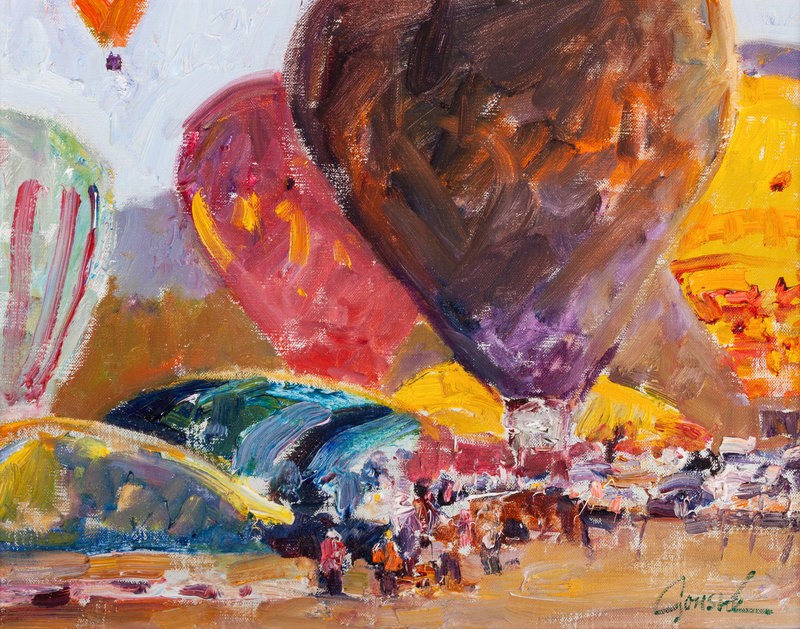 Sunday Morning Taos, oil on canvas, signed Gonske (lower right) and signed and titled (verso)