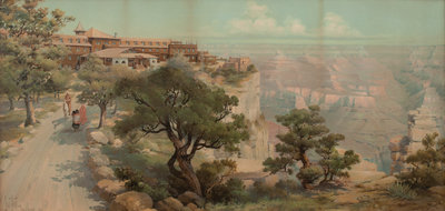 El Tovar, Grand Canyon Arizona, on the Santa Fe, 1906, chromolithograph, signed Louis Akin and dated (lower left)