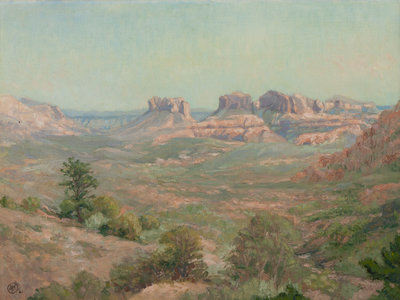 Red Rock Country, near Sedona, Arizona, 1961, oil on board, signed M.A.Y. Yerkes-Offley, titled and dated (verso)