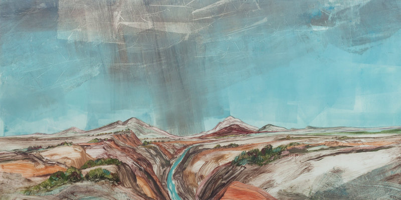 Navajo Rain, oil, watercolor and pencil on canvas, signed Larsen (lower right)