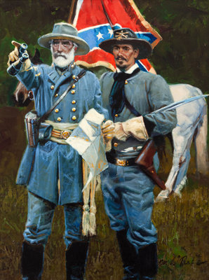 Lee at Gettysburg, oil on board, signed Don W. Prechtel (lower right)