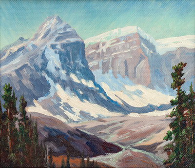 Snow Dome from Jasper Highway, oil on board, signed A.C. Leighton (lower right)