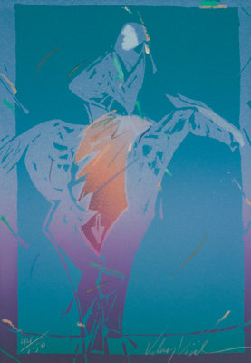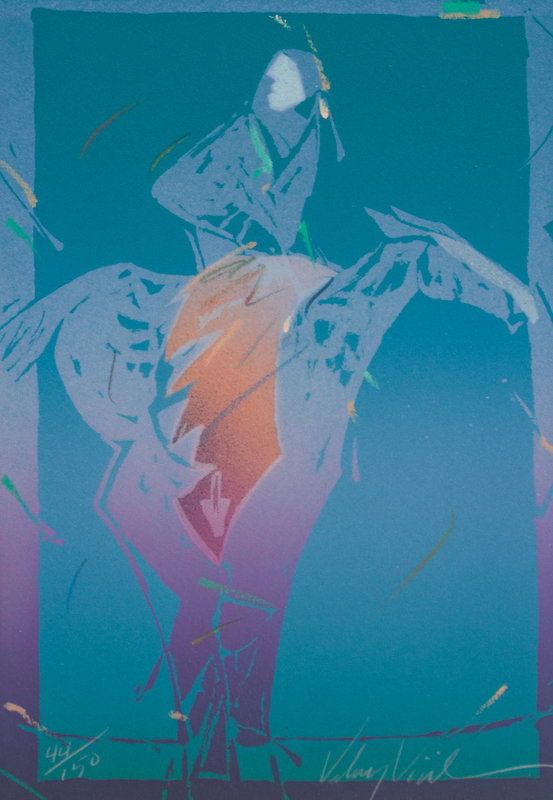 Indian on Horseback, edition 44/150, lithograph, signed Veloy Vigil (lower right) and numbered (lower left)