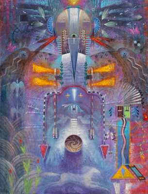 Cloud Figure with Butterflies, acrylic on canvas, signed Perkinson (lower right)