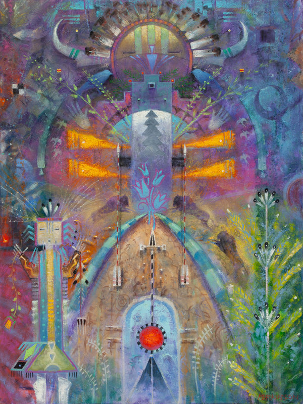 Cloud Figure with Buffalo, acrylic on canvas, signed Perkinson (lower right)