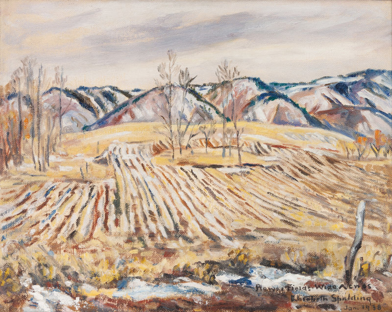 Plowed Fields. Wide Acres., 1938, oil on board, signed Elisabeth Spalding, titled and dated (lower right) and titled and dated (verso)