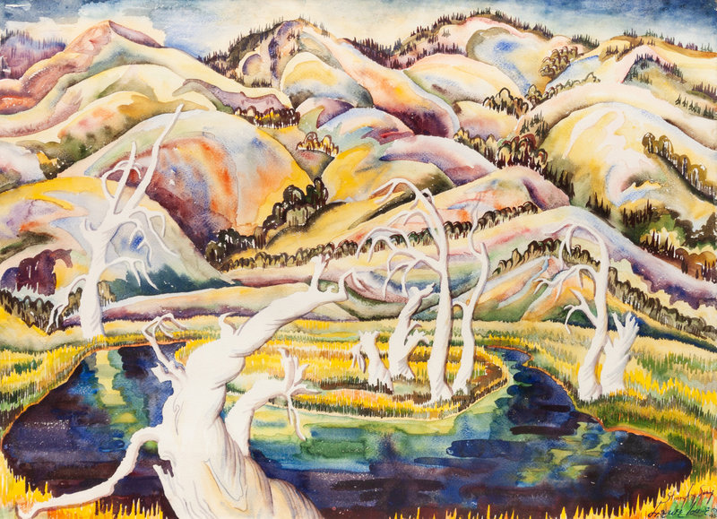 Strangling Swamp, 1945, watercolor on paper, signed Eve Drewelowe, titled and dated (lower right)