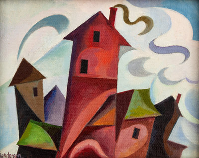 Rooftops, oil on canvas, signed Sanderson (lower left)