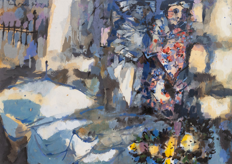 Figurative Abstract, 1957, watercolor on paper, signed Luis Eades and dated (upper left)