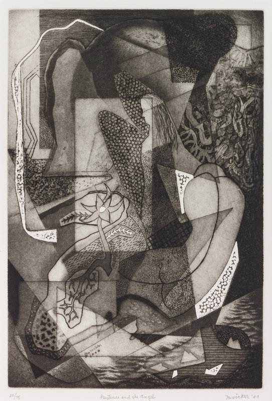 Penitence and the Angel, edition 20/75, 1949, color aquatint etching on paper, signed McVicker and dated (lower right), numbered (lower left) and titled (lower center)