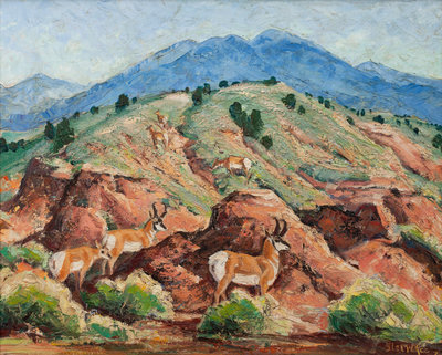 Antelope, oil on canvas, signed Ila McAfee (lower right)
