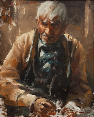Grand Pa, oil on canvas, signed Ramon Kelley (lower right)