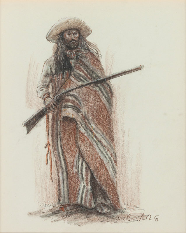 Mexican with Rifle, charcoal and cante crayon on paper, signed Joe Beeler (lower right)