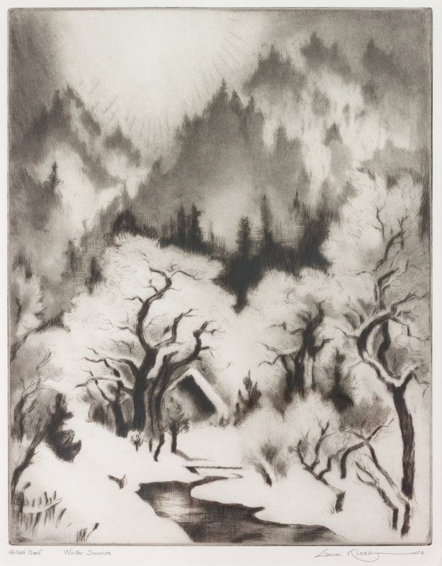 Winter Sunrise, Artist's Proof, etching, signed Gene Kloss (lower right) and titled and numbered (lower right)