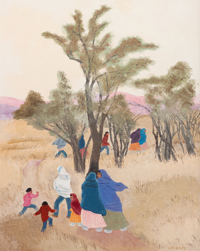 Out for an Evening Walk, oil on board, signed Latham (lower right)