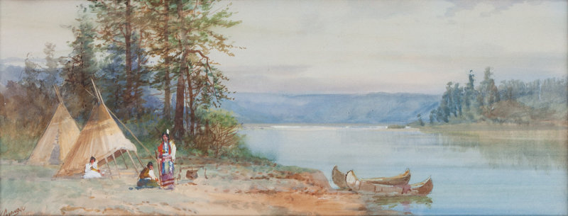 Family Camp, tempera on paper, signed V. Casenelli (lower left)