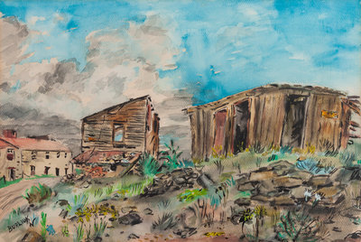 Near Central City, watercolor on paper, signed Burliuk (lower left)