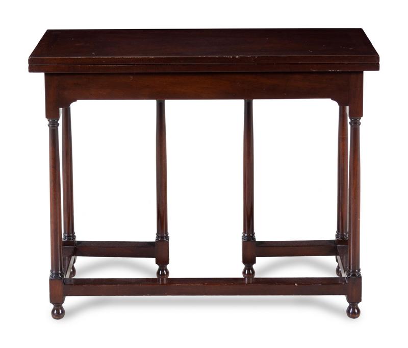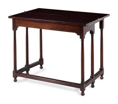 having a hinged rectangular top raised on turned legs joined by stretchers.