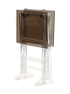 Two Lucite Folding Tables and Standing Tie-Rack