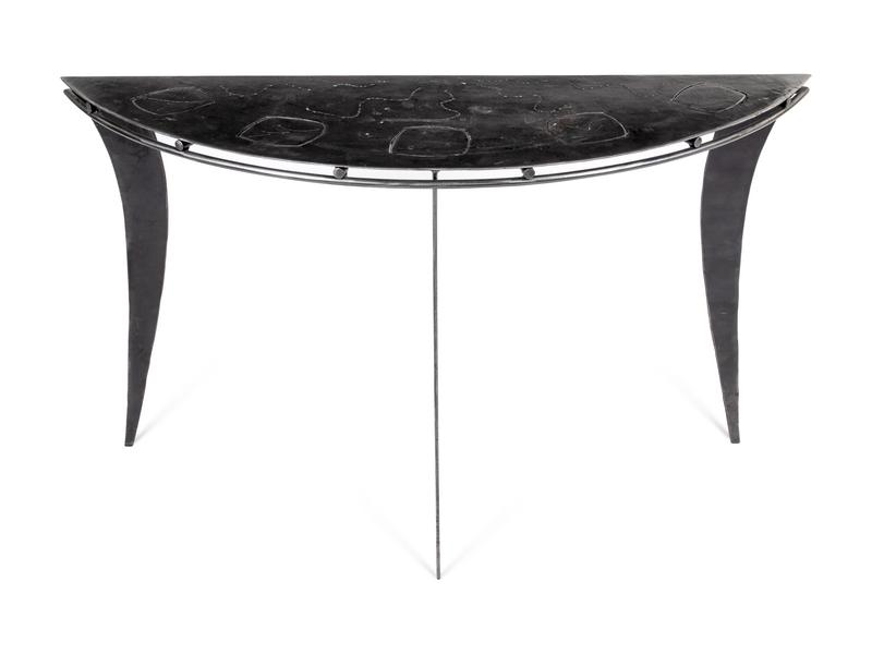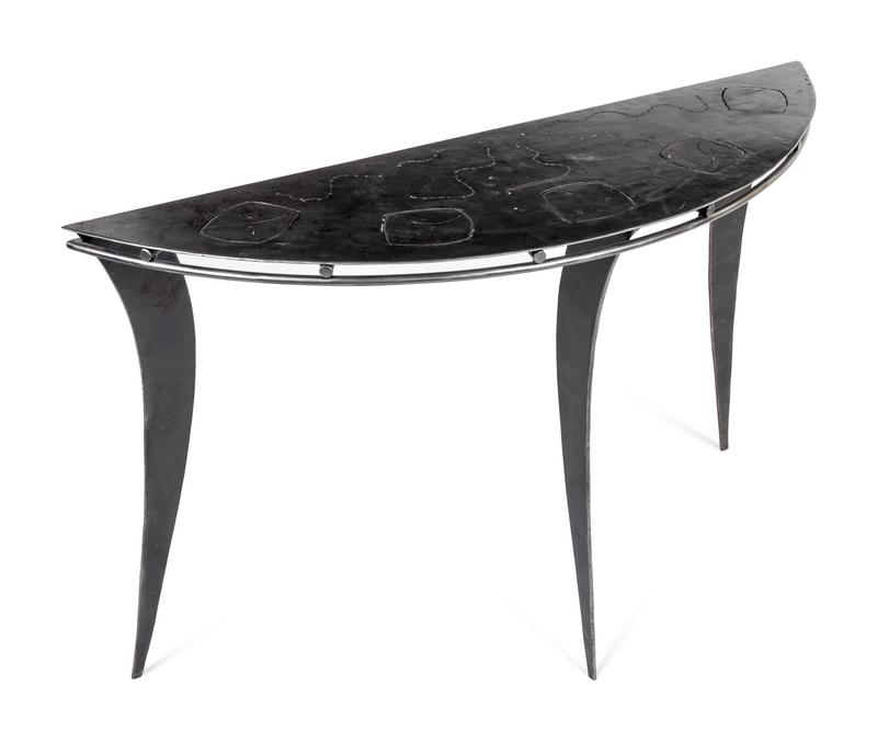 A Pierced and Brushed Steel Console Table