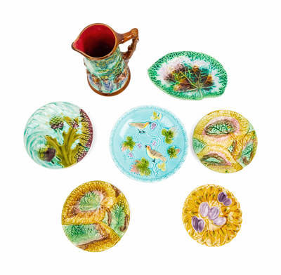 Seven Majolica Articles