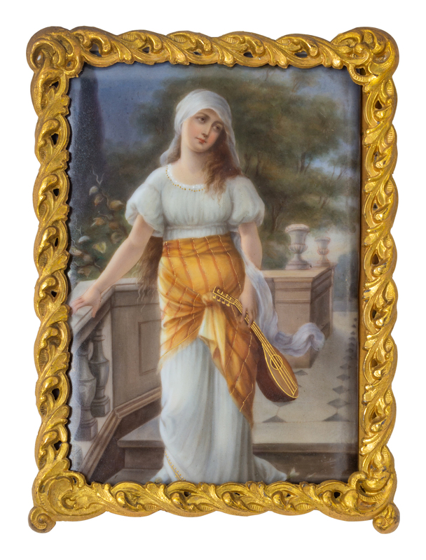 Height 5 7/8 x width 4 1/4 inches. Framed height 6 1/4 x width 4 5/8 inches.