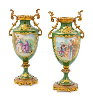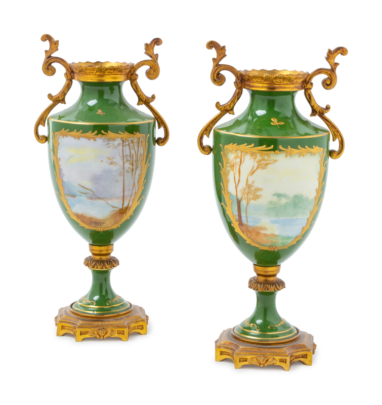 A Pair of Sevres Style Gilt Metal Mounted Porcelain Vases