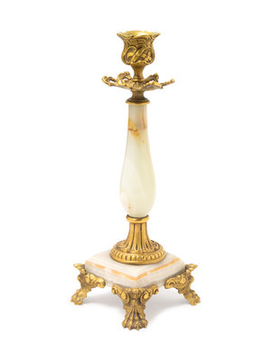 A French Gilt Metal and Onyx Candlestick